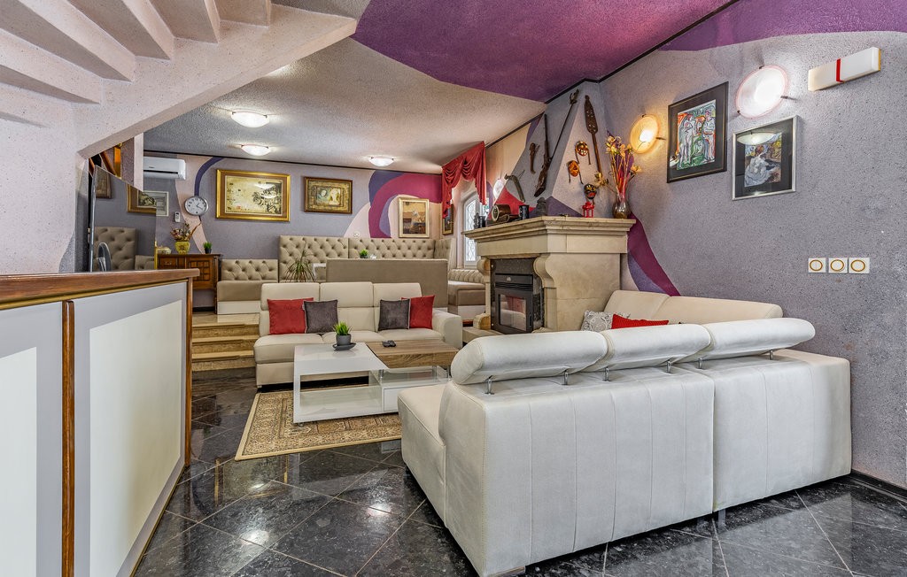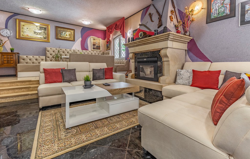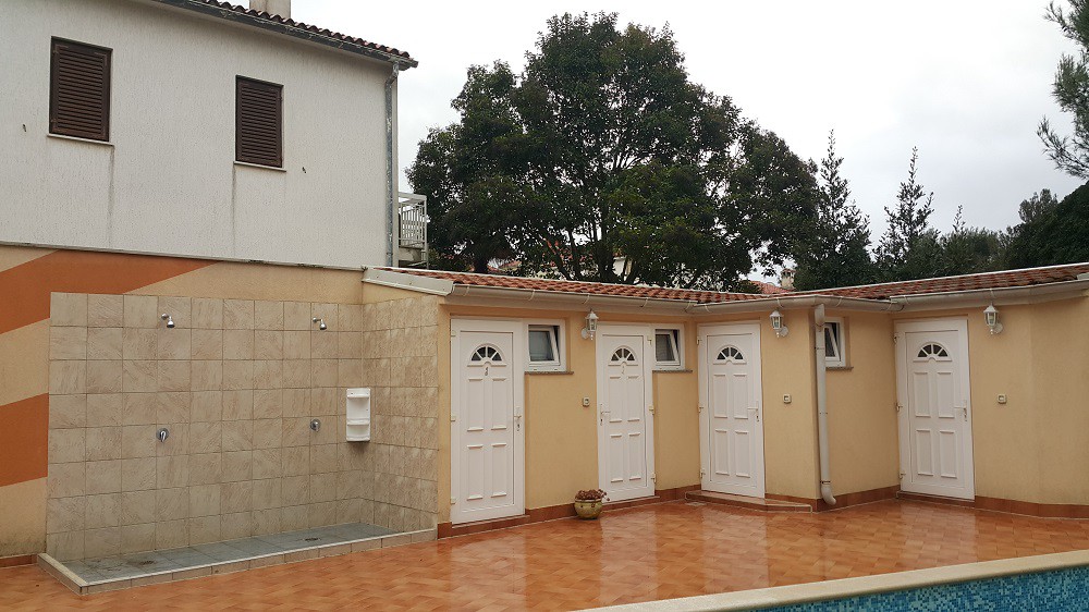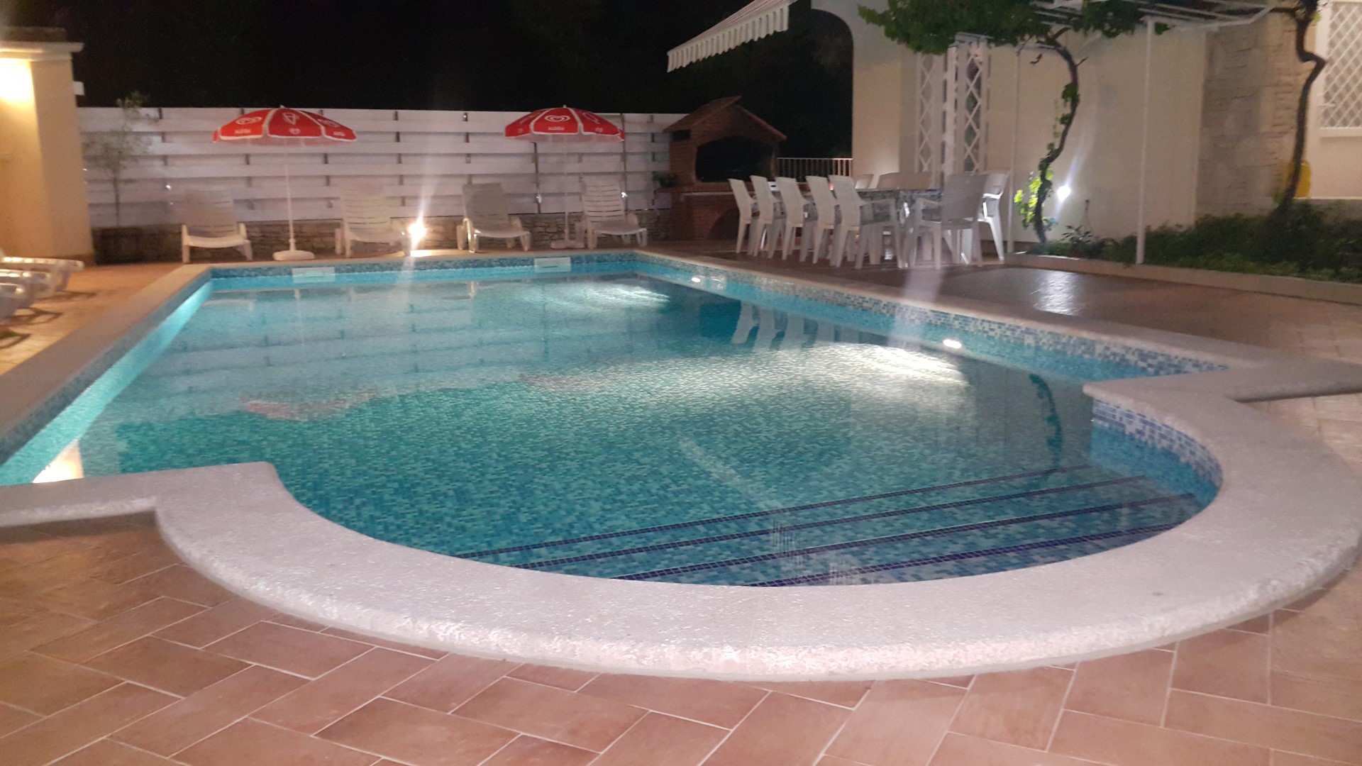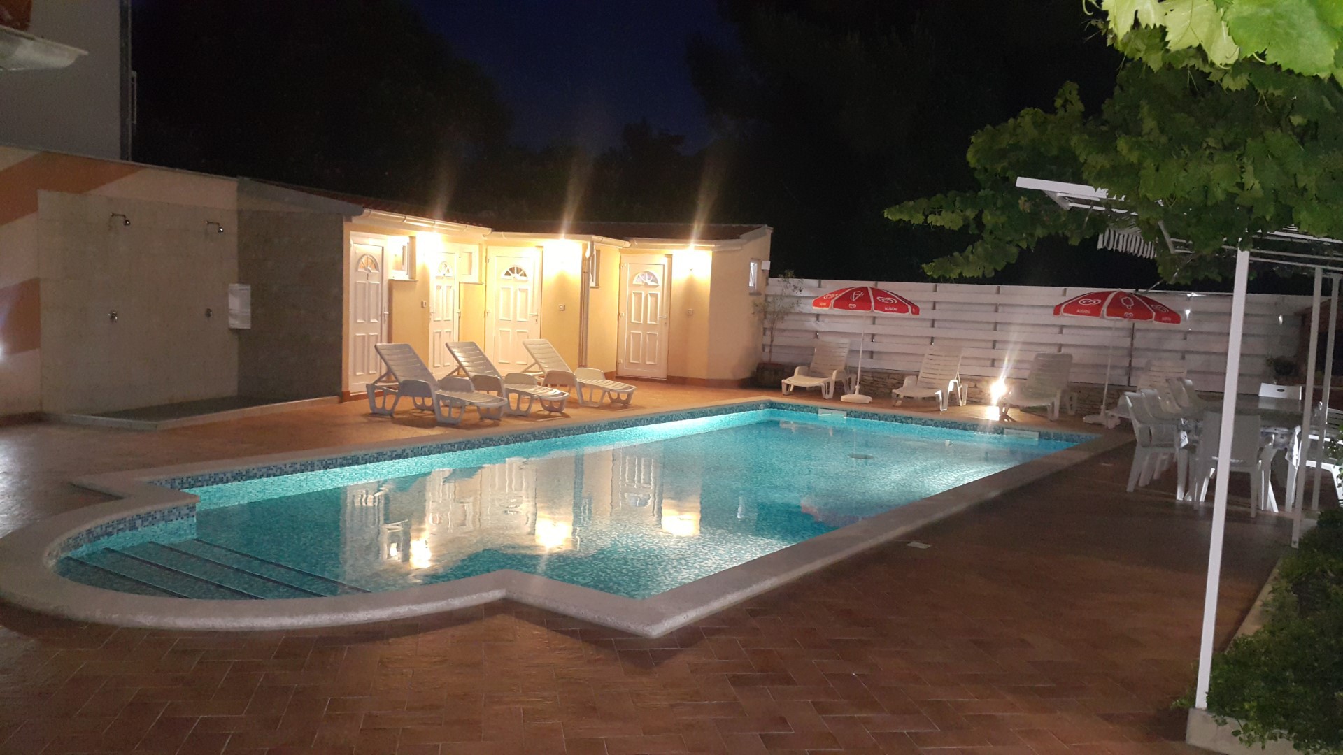Ova dvokatnica ima i vlastiti bazen s grijanom slanom vodom (dimenzije: 10 m x 5 m; dubina: 90 cm - 160 cm). Bazen je opremljen modernim sustavom za čišćenje vode, koji vodu prilagođava ph-vrijednosti ljudske kože, ima sustav za masiranje te noćno osvjetljenje. Na raspolaganju Vam stoje i ležaljke, koje možete besplatno koristiti. Kuća ima na raspolaganju i saunu čije korištenje nije uključeno u cijenu smještaja te se naplaćuje zasebno. Vlasnici stanuju u jednoj maloj kući, koja se nalazi na istom posjedu.